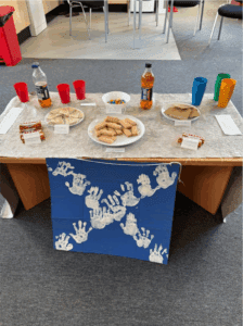 The children and staff had worked together on a ‘Scotland meets the USA’ project which included a brilliant hand printed Scottish flag along with a ‘taste of Scotland’ table where tattie scones had to be explained!